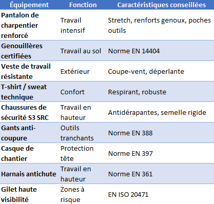 👕 Tenue de travail recommandée pour Charpentier
