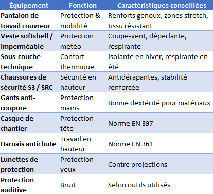 👕 Tenue recommandée pour couvreur