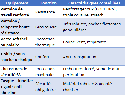 Notre rôle : proposer des vêtements robustes et certifiés, conçus pour les réalités du gros œuvre en Suisse romande.