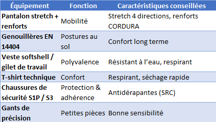 - Tenues flexibles & robustes spéciales maintenance