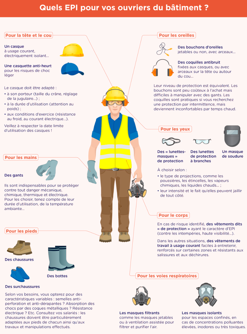 Les EPI sont des équipements destinés à protéger directement contre un danger identifié sur le chantier.