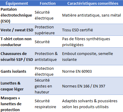 - EN 61340-5-1 : Vêtements ESD