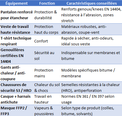Vêtements de travail & EPI pour les spécialistes de l’étanchéité