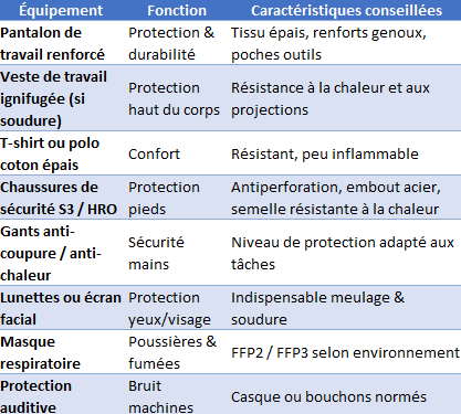 👕 Tenue recommandée pour serrurier / métallier
